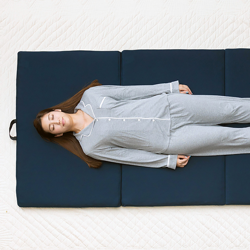 整体効果を発揮させるため、肩までをしっかり支える三段構造。また寝返りを打っても頭が落ちずに心地よく眠れるサイズ感を意識しました。